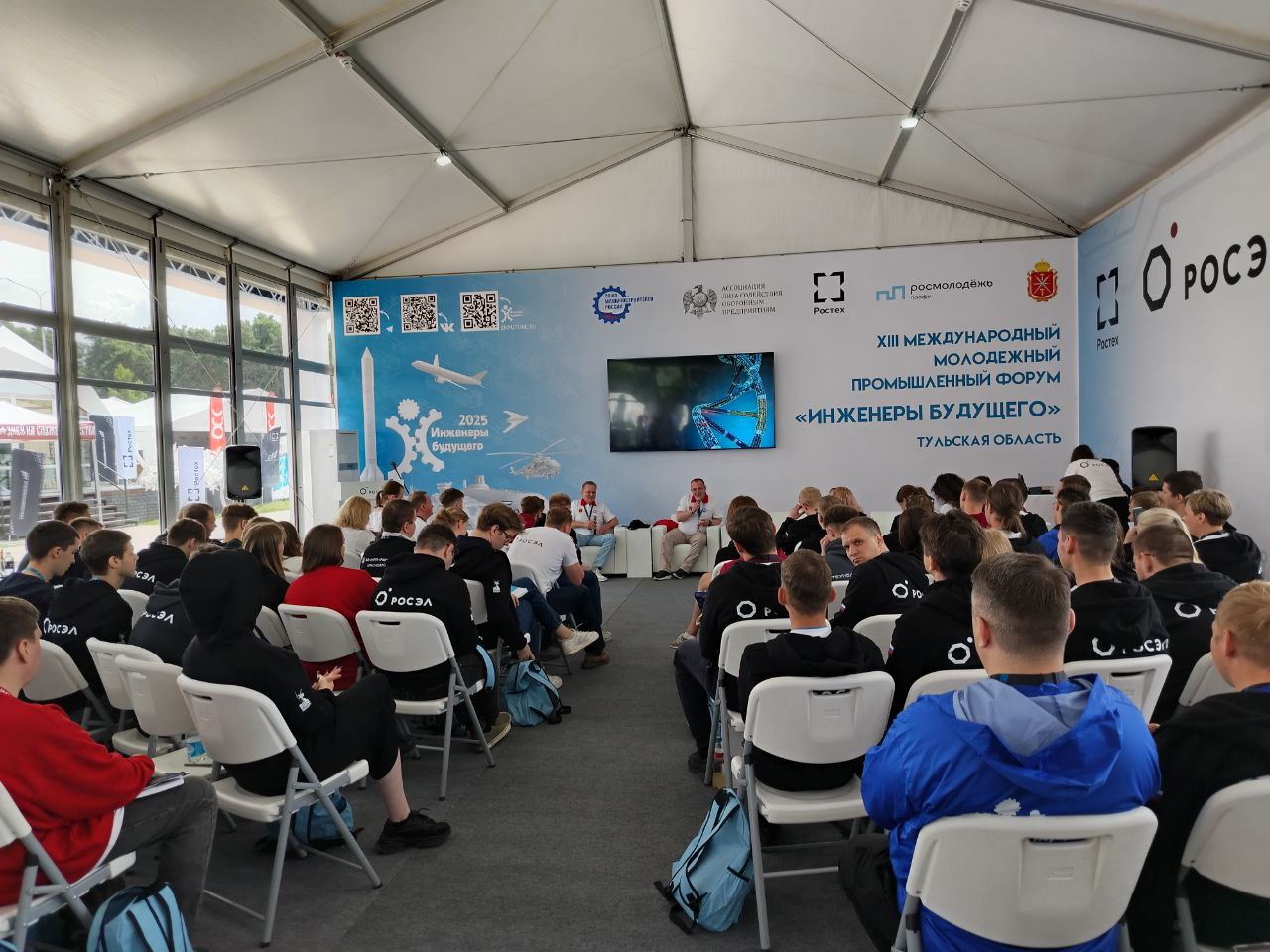 Обсудили актуальные темы молодежной политики и как она влияет на стратегическое развитие корпорации. Увлекательная и открытая беседа состоялась в шатре Росэл «Территория радиоэлектроники».