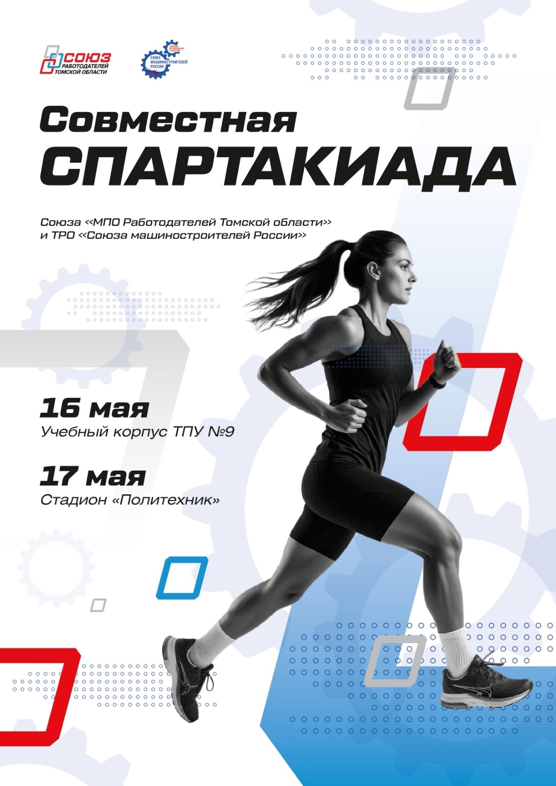 В субботу, 17 мая, в 12.00 на стадионе «Политехник» (ул. 19-й Гвардейской Дивизии, 20/1) состоится торжественное открытие Совместной Спартакиады Союза «МПО работодателей Томской области» и Томского регионального отделения «Союз машиностроителей России».