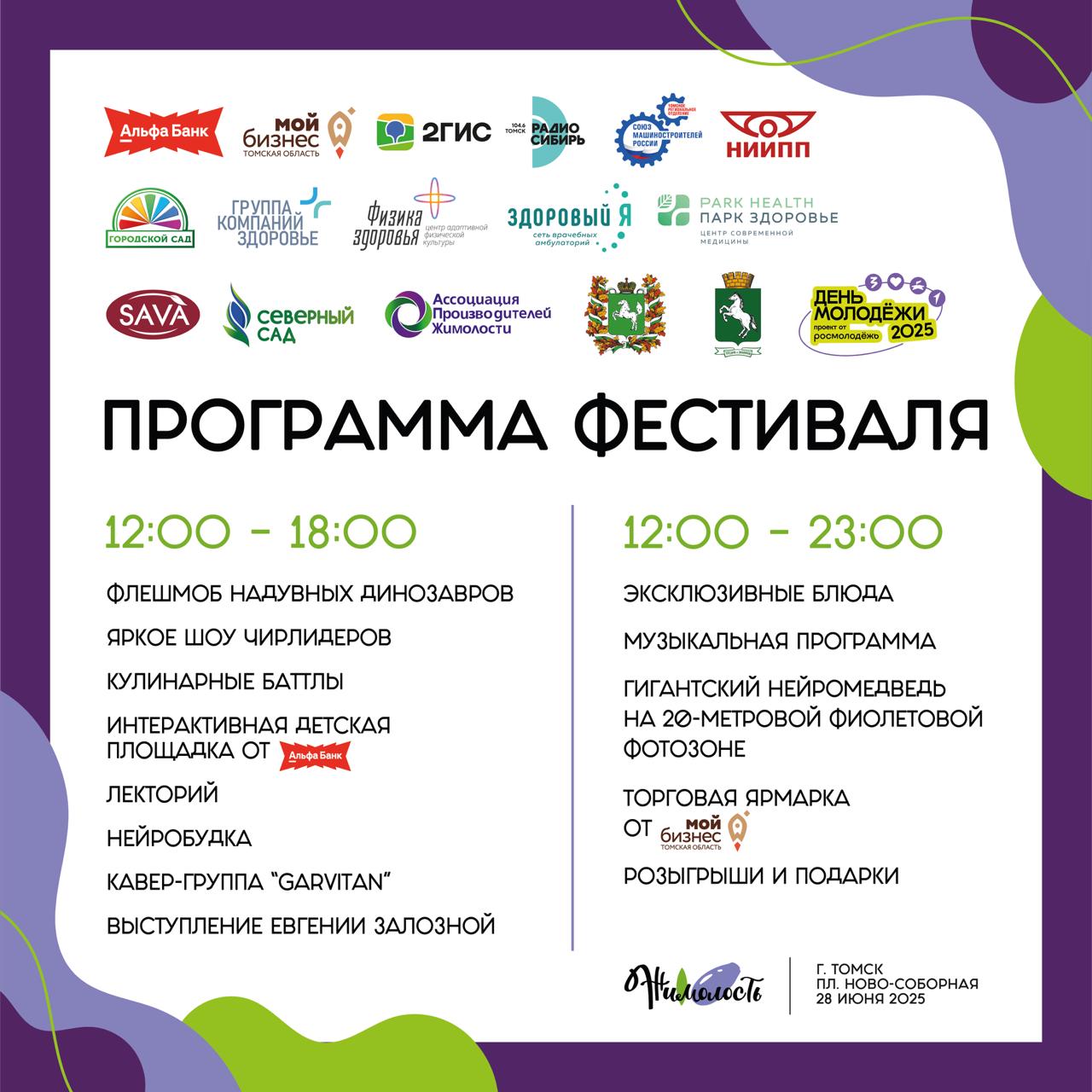 По инициативе председателя Томского регионального отделения СоюзМаш России Е.А. Монастырева в рамках соглашения о сотрудничестве с Управлением молодежной политики Администрации г.Томска наше реготделение, а также АО «НИИПП (входит в СоюзМаш России) выступают партнерами IV гастрономического фестиваля «Жимолость», который пойдет 28 июня на Новособорной площади в Томске.