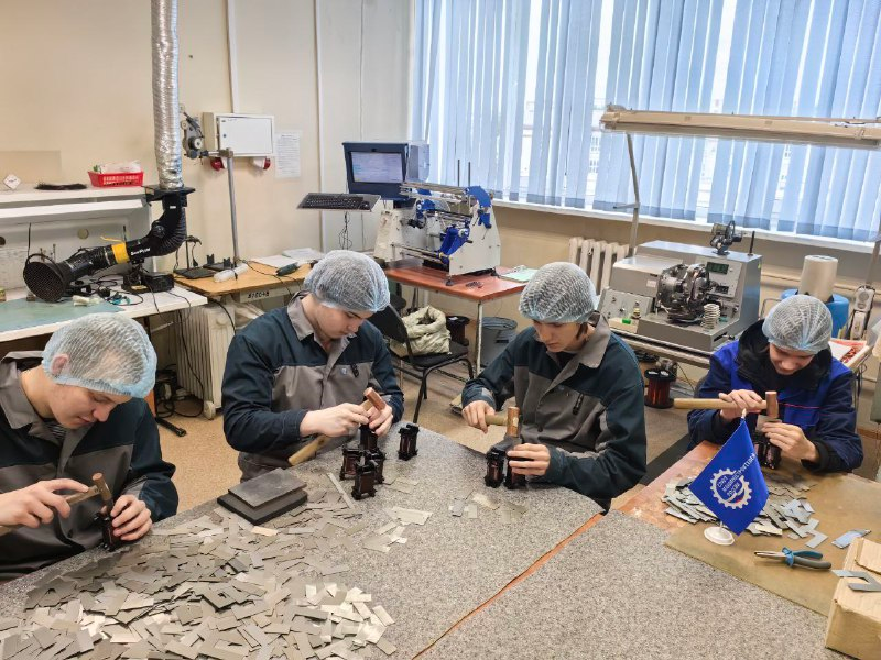 На фото ребята, обучающиеся по направлению подготовки «Технология машиностроения», осуществляют сборку трансформаторов для зарядных устройств «Кедр-авто».