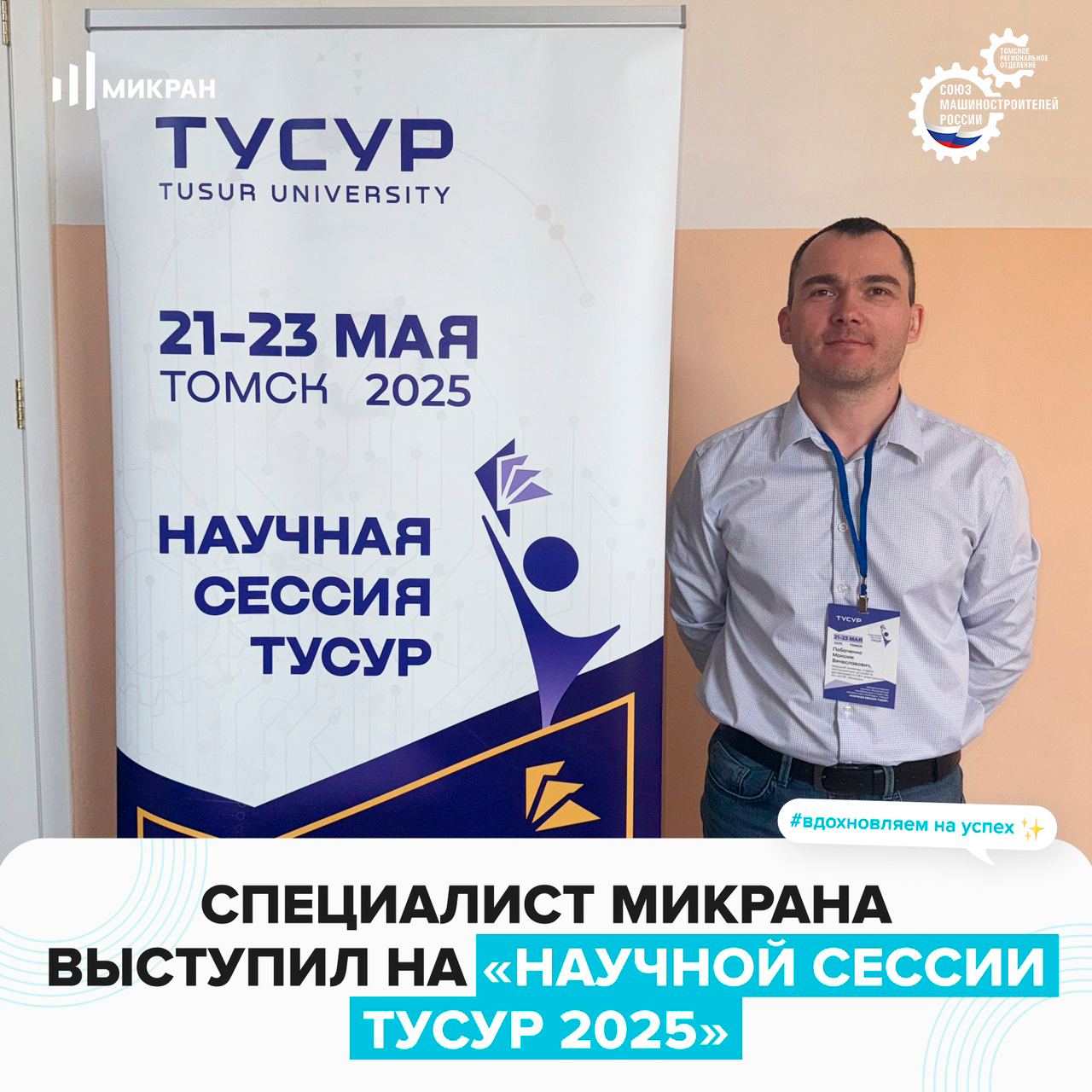 22 мая в рамках XIX Международной научно-технической конференции студентов, аспирантов и молодых учёных «Научная сессия ТУСУР», организованной при поддержке Томского регионального отделения СоюзМаш России, ведущий инженер АО «НПФ «Микран» (входит в ТРО СоюзМаш) Максим Побаченко представил доклад на тему «Сквозное проектирование - современный инструмент инженерии».