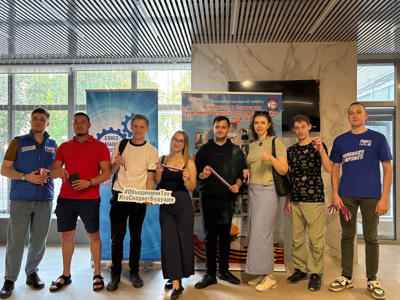 Сегодня, в рамках Всероссийской акции «Российский триколор», Томское РО СоюзМаш России совместно с Молодой Гвардией Единой России при поддержке Управления молодежной политики Администрации города Томска в рамках соглашений о сотрудничестве организовали и провели важное патриотическое мероприятие – раздали всем желающим на проходной АО «НИИПП» (входит в СоюзМаш) символ России.